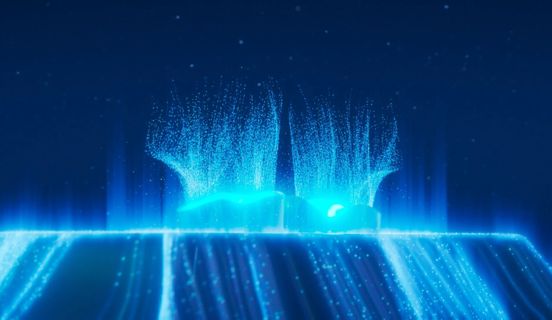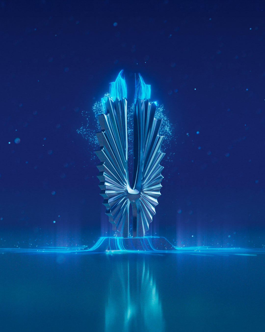 The live stage required us to plan for an ultra-wide ratio. To support the statuette as the central element, we designed bioluminescent lines emerging from the side screens to meet on the main screen to form the trophy from the ground up.